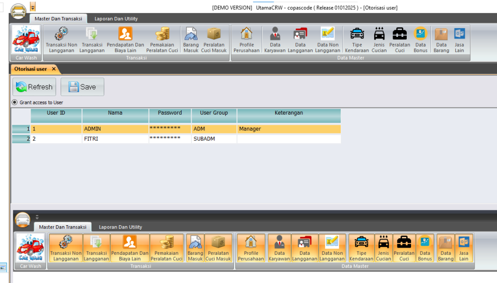 Apa saja modul dan menu yang ada di Aplikasi Program Jasa Usaha Cuci Mobil/Motor?